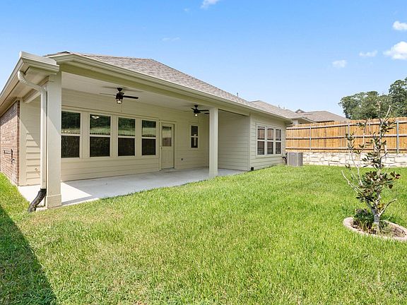 Come fall in love with this immaculate home & amazing floorplan! Upon entry, you are greeted with beautiful wood-like tile that flows througout the main areas!You will notice plenty of windows giving great natural light! The oversized living room give endless design options! The kitchen has a reverse osmosis system, walk-in pantry, & motion sensor under cabinet lighting! You will love the stunning 8 ft. long granite top island! The primary suite overlooks your peaceful backyard & offers a soaking tub, & giant walk-in closet with built-in shelves! The front bedrooms has it's own private en-suite bathroom too! This could make a personal office or guest suite! Every bedroom is a great size with a generous closet! Plus a WHOLE HOME water softener, full gutters, extra long covered patio & NO BACK NEIGHBORS! You are estimated 4 miles to I-45, 2 miles from HEB & 4 miles to Lake Conroe! The Community offers a fishing pier, tennis courts, walking paths & park! FRIDGE WASHER & DRYER INCLUDED!
