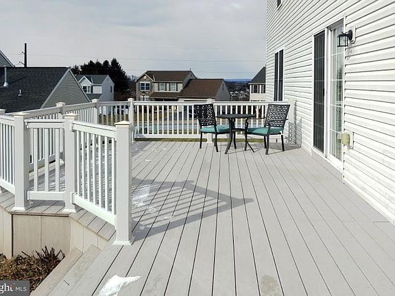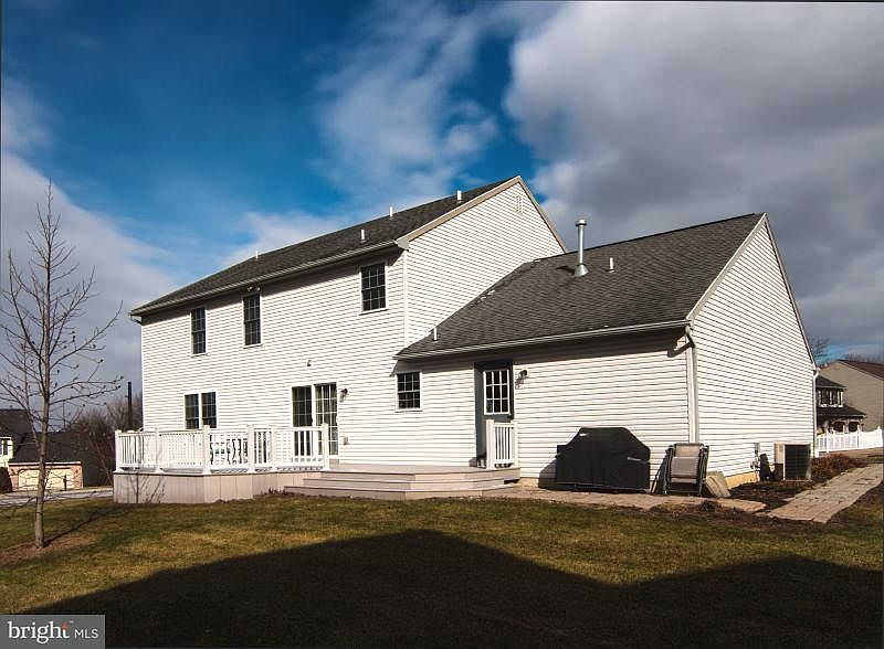 Residing on a large .43 acre corner lot in the highly desirable Autumn Ridge, this well-maintained home boasts over 2,800 square feet of open living space. Walking through the front door, you are greeted by a soaring two-story entryway revealing a spacious, open floor plan with plenty of room for entertaining. The main level features gleaming hardwood floors throughout, as well as endless chair rails and crown molding in the expansive formal dining room. Additional features include a first-floor powder room and a large mudroom/laundry room. The delightful eat-in kitchen shows ceramic tile floors, a tile backsplash, gas range, two large pantries, and plenty of counter space, opening into a large family room with plenty of space for entertainment. From the eat-in kitchen, sliding glass doors lead to an expansive deck at the rear of the home for additional outdoor living space. The second floor features three considerably proportioned bedrooms and a Master Suite that exudes elegance with gorgeous wood laminate flooring, a separate sitting room, and a MASSIVE walk-in closet. The Master bath is well appointed with a stand-up shower, jetted tub, dual vanity, and ceramic tile floor.