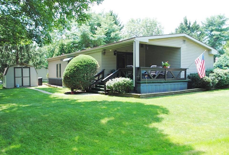 One of the best views from the covered porch in Eastwood Village. Privacy and nature abounds! All appliances/some bedroom furnishings stay. Two beds/2 baths at opposite ends. Insulated windows, Pella door, updated flooring, hi-rise toilets, breakfast bar and walk-in pantry. Large shaded lot. Pet friendly rules allow big dogs. Quick occupancy and easy park approval for credit scores above 650. Spacious 1983 Redman DBLWDE. See 47 pics!