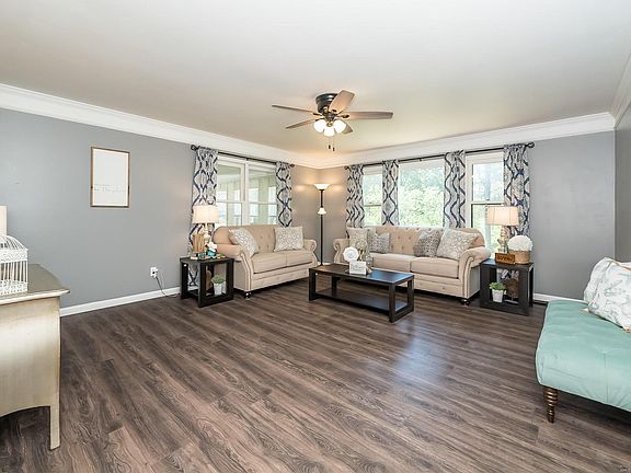 Country feel with city convinces!! This fabulous home is located on 2 parklike acres with a CREEK, A BRIDGE, mature trees and a 20x24 outbuilding with concrete floor and electric! This 3 bed, 3 bath home has laminate flooring throughout the main living areas and tile flooring in the bathrooms. The kitchen has stainless steel appliances and tile back splash and the dining room has built ins along the back wall. The lower level is sure to please with a media room complete with projector and motorized screen, bonus room with large closets, full bath & HUGE laundry/utility room. The home also has a large 2 car attached garage, stone patio w/ pergola, and a 3 seasons room off of the kitchen. Walking distance to Schools, library & Pool park! Additional Rooms: Sun Room