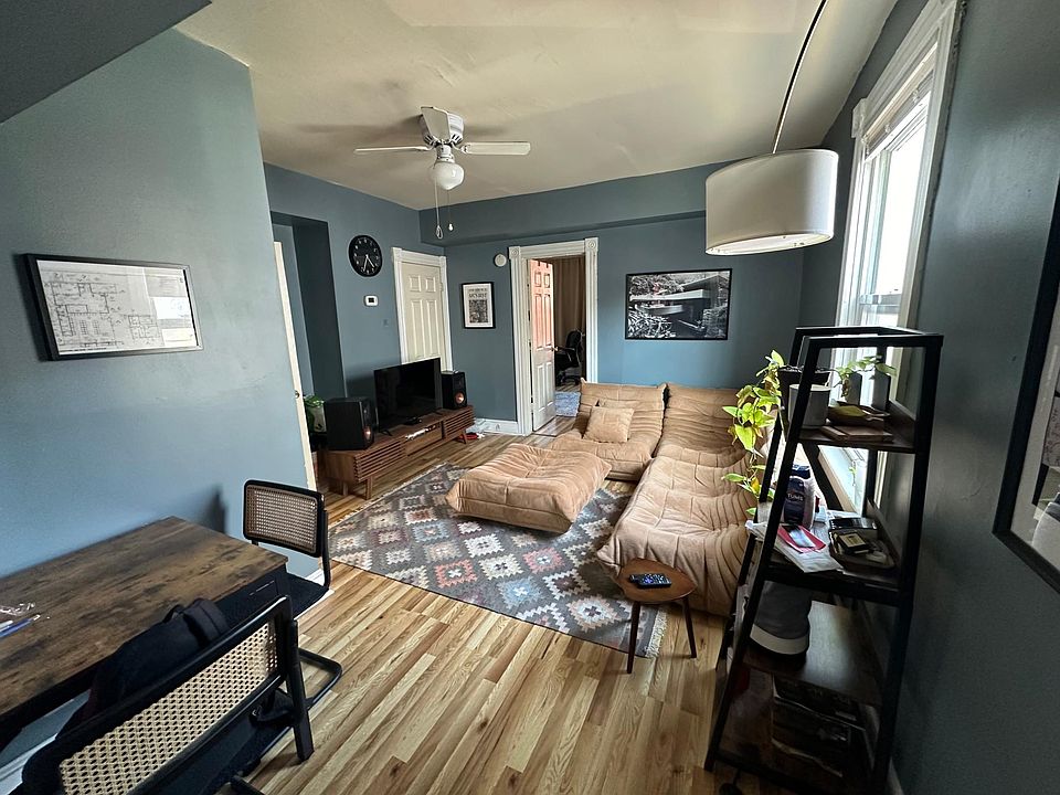 This is a 2nd floor front spacious apartment . Large windows with wonderful light. central air , washer / dryer . Tub shower . Kitchen appliances range , dishwasher and microwave, refrigerator
