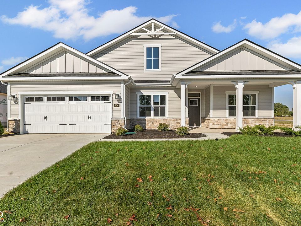 Don't miss this beautiful, completed new construction home in Avon on oversized homesite. This Ashbrooke is a 3 BR/ 2 BA ranch plan in a new boutique all-ranch community. Enjoy all Avon has to offer with shopping and dining nearby. This home is full of natural light and features an open concept with luxury vinyl plank flooring throughout main living areas and includes 9' ceilings, large windows, 42" cabinets, quartz countertops and stainless steel appliances. The owner's bath features a large oversized tiled shower and walk-in closet. Enjoy your coffee on the front porch, or rear covered patio. Customize your outdoor living area on your oversized 0.29 acre homesite in this exciting new community.