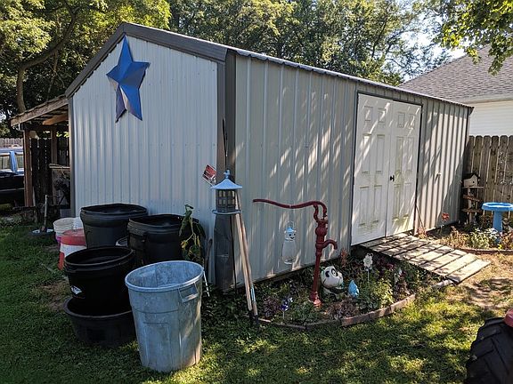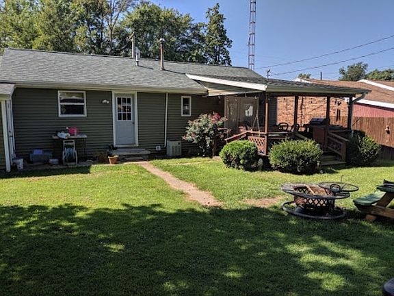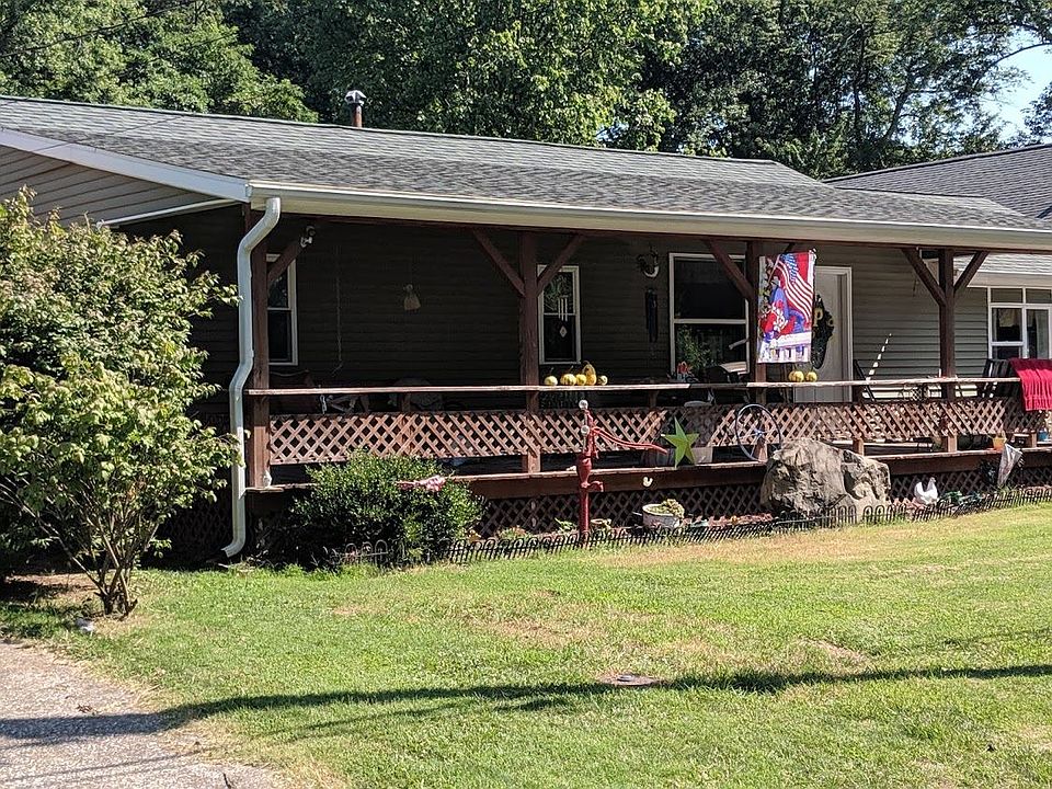 Enjoy the large front porch on this 2 bedroom, 1 bath updated ranch home with newer roof, windows, guttering and more on nice size lot with 7x14 attached car shed and 12x20 storage building.