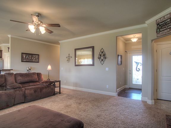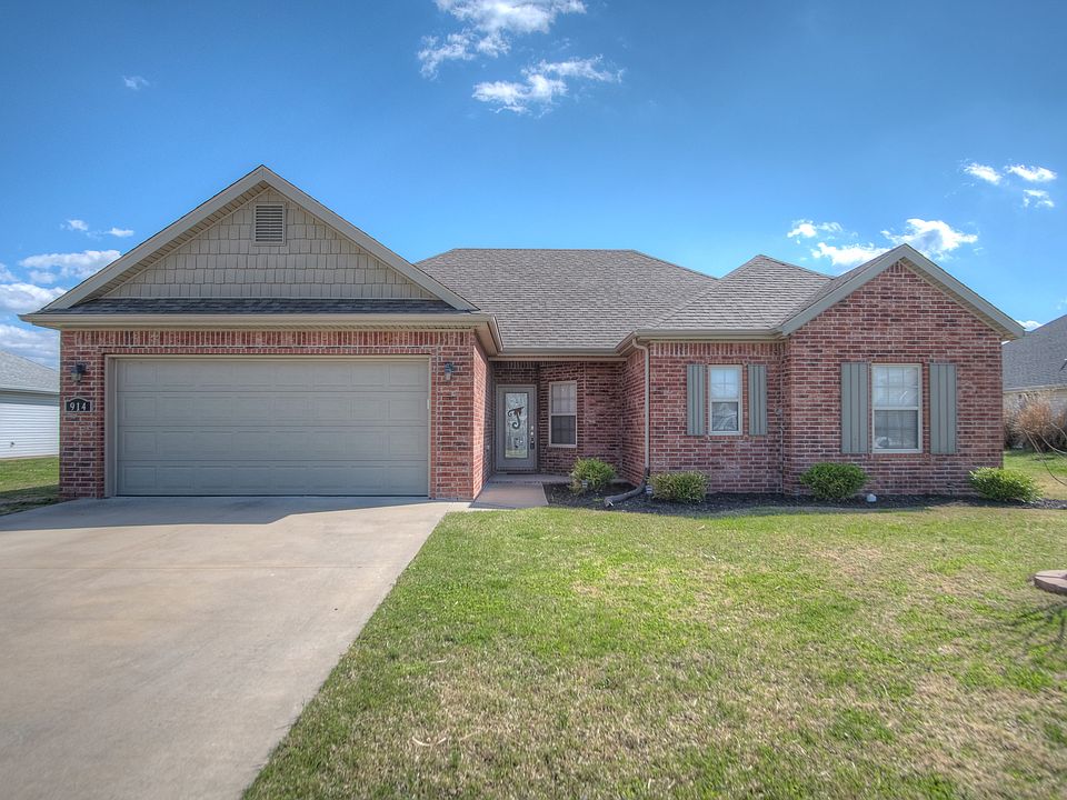 Lovely split bedroom, open floor plan, built by Cornerstone Construction in Deerfield Estates Subdivision. Brick fireplace, covered patio, privacy-fenced back yard, spacious master with double sinks and double closets. All stainless kitchen appliances STAY with property!