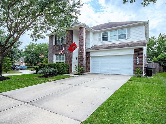 Conveniently situated off the Grand Parkway and IH 45 this spacious home is located on a corner, is freshly landscaped with gorgeous curb appeal. Features include laminate floors in living areas downstairs and fresh paint inside and outside! As you enter there is a multi-use space which can be used for a den, study, or formal dining area; family room is separated and has a gas log fireplace; open and spacious kitchen with double doors leading to the HUGE back yard! You will be impressed with the utility room/HUGE walk in pantry just off the kitchen! Head upstairs where ALL BEDROOMS are located! This master suite is to die for! Very spacious and features a large walk in closet, updated counter/sink area, soaking tub and walk in shower. PLUS a separate area you can use for a vanity area, work out area or infant room. Game room plus two additional bedrooms and full bath complete the upstairs; head out to the back yard which is pool sized and has a new deck and shed for storage.