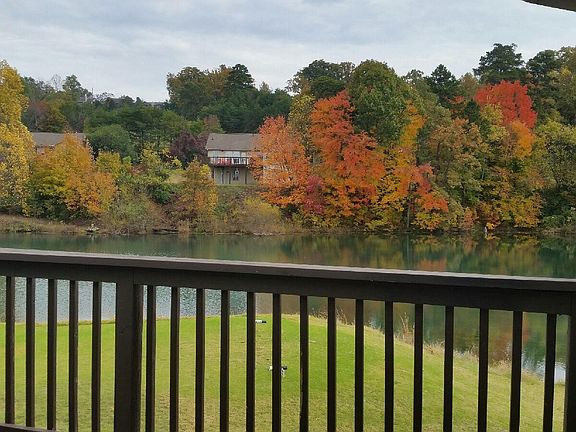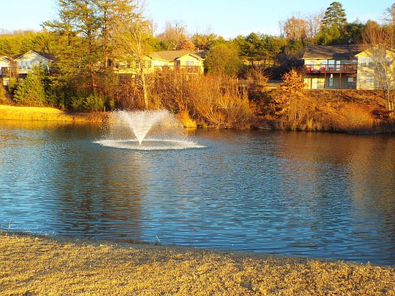 Beautiful brick condo backs to water! Open Great Room w/cathedral ceiling, gas fireplace & wood floors; opens to the dining area and kitchen. Lots of cupboard space in kitchen. Wonderful Sunroom offers view of water with fountain and golf course. Large master bedroom on main level w/wood floors, walk in closet, master bath. Powder room on main level. Laundry room w/large closet/pantry. 2 additional bedrooms downstairs w/full bath. Bonus/rec room downstairs has new flooring. All downstairs bedrooms have oversized closets (1 is walk-in). Extra storage under stairs. Fresh paint throughout. 2 car garage. Relax on your deck and enjoy the view! HOA covers items such as mowing, outside pest control, roof, deck and more. City Schools. Pool and clubhouse on site. Owner/Agent SELLER IS MOTIVATED.