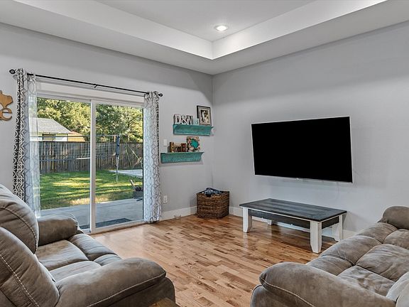 Charming 4 bed 2 bath on .3 acre corner lot. Located in highly desired Paradise Bay subdivision. Entering the home you are greeted with an open kitchen & living area perfect for entertaining. Kitchen boasts a large island, granite counters, tile backsplash, deep sink, abundant cabinet space & modern elegance. Kitchen seamlessly opens into the living & dining area featuring tray ceiling, recessed lighting, TV wiring, & sliding glass door leading to the backyard. Real stained hardwood flooring throughout the kitchen, living area & hallways. Master suite features a connected bathroom, walk in closet, tray ceiling & ambient lighting. Master bath features tile flooring, double vanity, walk in shower & separate soaking tub. Garage features rubberized epoxy floor & motorized door. Backyard is complete with a covered patio with hot tub & wood privacy fence. Concrete pad in the backyard is ready for building. High speed internet tower installed. POA offers two public boat ramps, fishing docks & swim area.