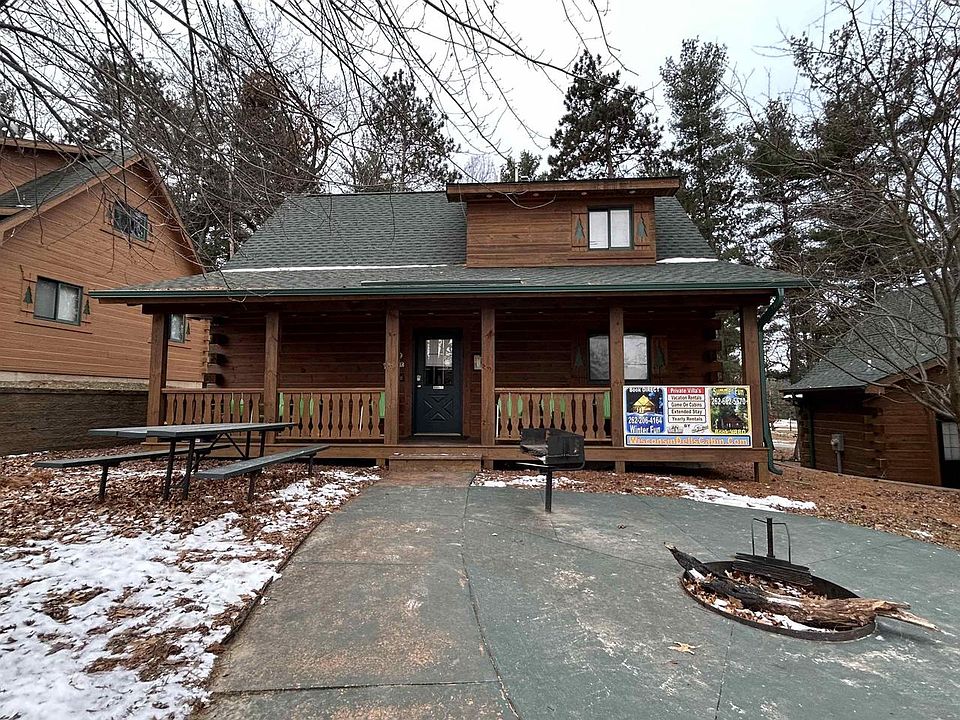 Completely furnished cabin with 14x12 loft addition to use how you wish. Extra game room area? That would be perfect! Need additional sleeping room? That also would be a great fit for this space! Maybe a crafting space or Hobbes room? The sky is the limit! Great cabin for a special getaway, vacation rental, or a sweet cozy cabin for your very own! Lots of lamps for warm lighting will make you feel cozy and comfortable whatever you choose this home for. Covered front porch, and cement patio with built in fire pit and grill. New roof in 2022.