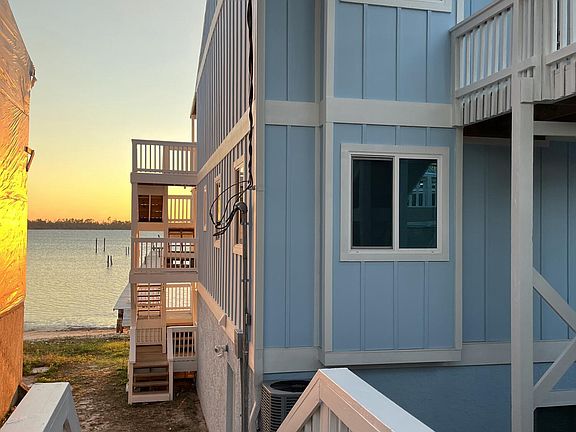 The Upstairs unit boasts 3 bedrooms 21/2 Baths with a Balcony off the Master Bedroom and Balcony off the spacious living room both with magnificent sunset and water views. Kitchen, living room and half bath on the top floor and Bedrooms and baths, laundry with new washer and dryer, second floor. High ceilings accent the main living area with an open concept. Very first floor houses an efficiency apartment with 1 bedroom 1 bath, kitchen and living room again with views of the Bay and sunsets. This unit has a washer and dryer of its own. Live in one unit and rent the other or rent both units, your choice, no restrictions! Long term rental Potential Income $4,000 a month. $1,500 for 1 Bed and $2,500 for 3Bed. Fresh paint inside was done recently. A MUST SEE! Buyer and Buyers agent to verify All dimensions and anything deemed important.