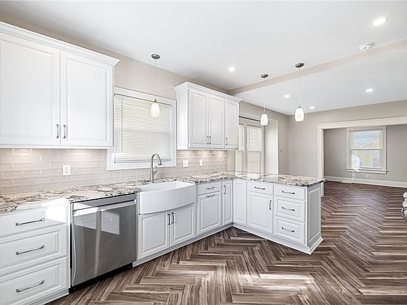 This gorgeous home is 3 bedrooms 2 full bathrooms & totally updated from top to bottom! Brand new open concept kitchen with beautiful counter tops. Brand new roof, windows, siding, electrical, plumbing, furnace, central air and much more. Enviable herring bone new floors including new carpet. The entire second floor is the master bedroom with walk in closet and private bathroom. Large front porch. Detached garage. All brand new appliances stay. Move right in!