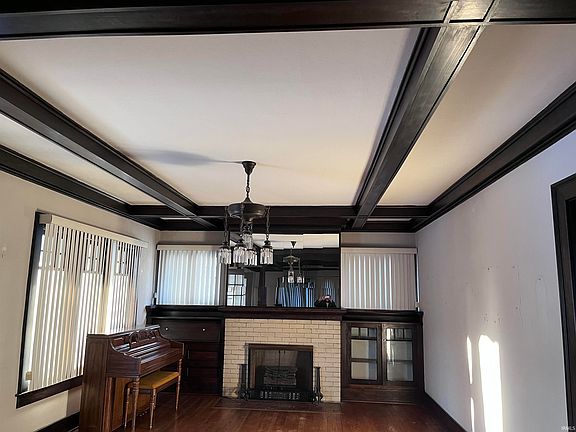 Classic charm best describes the entry into the LR and DR of this older home. Bold, dark natural woodwork makes these two rooms quite beautiful. The open-beamed ceiling, hardwood floors, brick fireplace with adjacent, glass-doored bookcase and planning desk make these rooms stunning. Each has a unique chandelier and the dining room has a plate rail. Very Pretty. Additional space on the first level consists of 2 BRs and a bath. Both BRs have nice closet space for an older home. The second floor does require some work. The great, open space is a blank canvas ready for your imagination to make it more functional for your needs. Basement has the washer and dryer and also a shower. There is a large 2-car garage with an alley entrance. Some plumbing and electrical has been updated. Property is being sold "AS IS" and this includes any personal items currently in the home and garage. FRONT RAILING FROM SIDEWALK IS LOOSE.