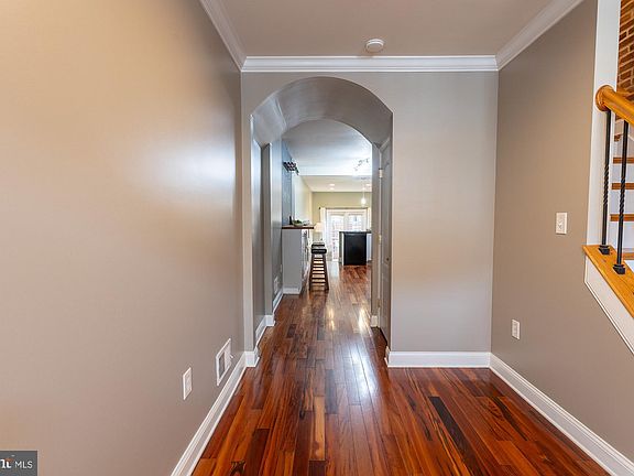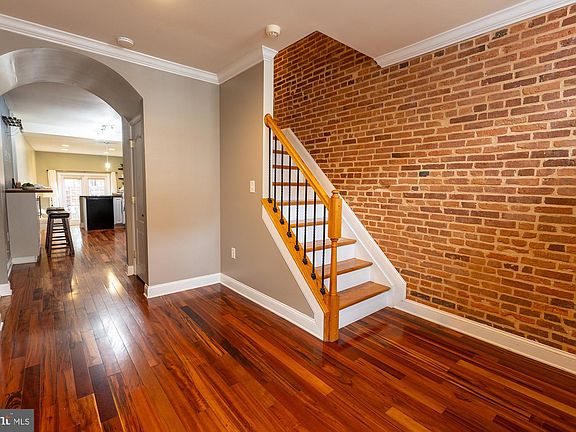 Prime location! This 2 bedroom, 1.5 bath Canton charmer features exposed brick, beautiful hardwood floors, LED lights throughout, kitchen with stainless appliances, granite counters, and bar area with stools. The sunken living room leads to an enclosed, private courtyard perfect for entertaining. The partially finished lower level would make a great office, third bedroom, or playroom. The unfinished part has a workbench, washer/dryer, and great storage. The balcony off of the primary bedroom has been totally re-sealed and resurfaced with Duradek waterproof vinyl. Also upstairs is a large full bath with a jacuzzi tub and separate shower. Conveniently located near many shops and restaurants including Canton Crossing, the famous DiPasquale's Italian Market, and just 1.5 blocks from Canton Square!