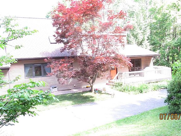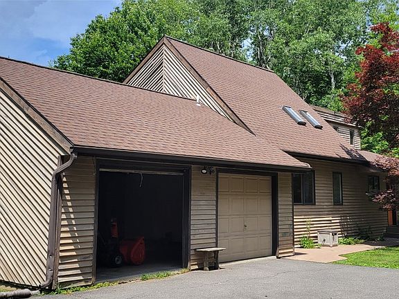 Beautiful contemporary 3B/3b home on almost 3 ACRES of terraced property. Just two miles from the Vestal Pkwy but in a serene country setting. Inside open concept kitchen-dining area opens to the living room area with a wood burning fireplace and stunning vaulted ceiling. Step out and relax on the spacious wrap-around deck and watch the deer go through. A bathroom on every level. Master suite occupies the 2nd floor with a jacuzzi tub. Lower level family/great room for a perfect entertainment or game area that opens to the covered outdoor patio. Side room is now the exercise area. Very large laundry and storage area also located on this level. Don't miss out. Located near the intersection of Bunn Hill, tucked in at the end of the tree-lined driveway. Close by BInghamton University. Open house Sunday,