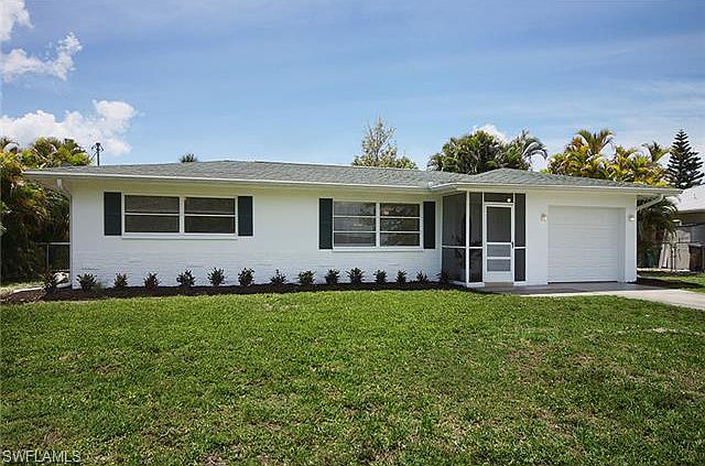 OWNER FINANCING OR CASH! TIP TOP remodeled 3 bedroom, 1 bathroom single family home in a very central location in Cape Coral with ALL ASSESSMENTS PAID. Quiet neighborhood, just minutes to Ft. Myers, close to shopping. Bright and open floor plan with kitchen island, new,white kitchen cabinets, new stainless steel kitchen appliances, cooktop, new granite counter tops and recessed lighting. The house has been upgraded with porcelain 18 inch floor tiles, new AC, a screened-in entry area and cute lanai, added patio, 1 car garage with automatic garage door, very private fenced-in backyard with southern rear exposure. Plenty of room for putting in a pool. The bedrooms have new carpet, the windows come with screens and blinds, the interior and exterior of the house has been freshly painted, shingle roof from 2006, decorative shutters around the front windows, washer and dryer in garage. The front and backyard has a newly installed 3 zone sprinkler system. Almost everything is new, move-in ready. House has been inspected and is in EXCELLENT CONDITION. Easy to show.