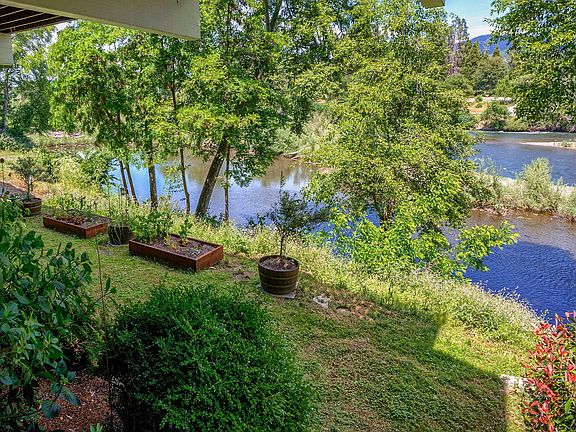 Beautifully maintained home with the perfect combination of in town river frontage in one of the most desirable developments in Grants Pass. Relax in this quiet neighborhood on the upper deck overlooking the river. The open floorplan and natural light flows throughout the home while providing everything you need all on the main level. Plus, a finished daylight basement on the lower level with family room featuring travertine tile, additional guest bedroom with built in murphy bed, and secondary patio overlooking the river. The kitchen includes top of the line appliances with granite counters, breakfast bar, along with butcher block center island with hardwood floors. The primary bedroom is roomy with walk in closet, large double vanity sinks and spacious bathroom. This home is one of 27 in this PUD (Planned Urban Development) with monthly fees of $325 per month which includes street side landscaping maintenance, water, sewer, common areas and street maintenance.
