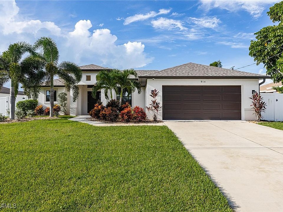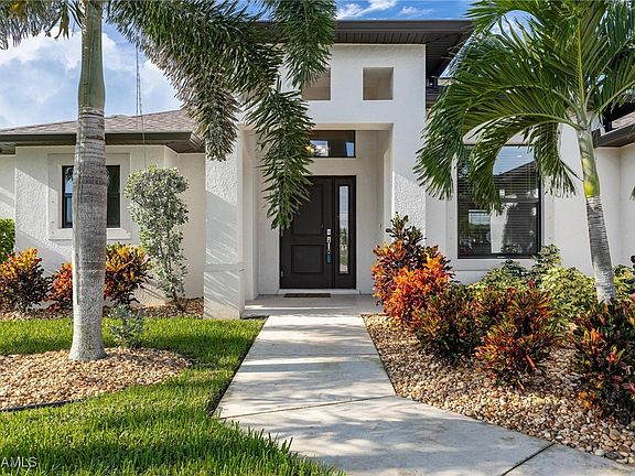 Welcome to your dream home in beautiful Cape Coral! This stunning 3-bedroom and 2-bath, heated pool home boasts southern exposure and canal views. The paved lanai offers a fantastic space for outdoor gatherings and entertaining. Ceramic tile floors throughout the living areas are complemented by new, cozy carpeting in the bedrooms. High ceilings enhance the natural lighting – making it bright and inviting. The spacious master bedroom features a beautiful tray ceiling, sliding glass doors to the lanai with access to the pool and views of the waterfront. The master bathroom is equipped with a standing shower and separate tub, including dual vanities for added convenience. The heart of the home is the modern kitchen showcasing stainless steel appliances and granite countertops ideal for both casual dining and entertaining. Check out the laundry room with washer, dryer and laundry tub. Don't miss this exceptional property that combines comfort, style and prime location in Cape Coral.
