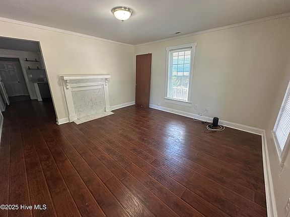 The PERFECT starter Home or investment property located in Goldsboro. This 2 Bed 1 Bath Renovated Home features a Covered Front porch to relax with your morning coffee, Newer Vinyl siding 2022, Newer Roof 2022, Newer HVAC 2022, Newer Hot water heater, New electrical, plumbing and NEW carpet in BOTH Bedrooms. The Living room boasts Engineered Hardwood floors, a Fireplace and Vinyl Windows that are aprox 4 years old. The Kitchen features Tile backsplash, a Built-in Microwave, Dishwasher, Stove and NEW garbage disposal all on Engineered Hardwood floors. Two spacious Bedrooms and a Full Bath w/NEW LVP flooring, a Gorgeous Claw-foot Tub and separate walk-in Shower. NEW Paint throughout the Home. Enjoy the Fully Fenced-in backyard, plenty of room for the kids or pets to run and play. Close to all local amenities. SHOWINGS WILL START 6 Sept.