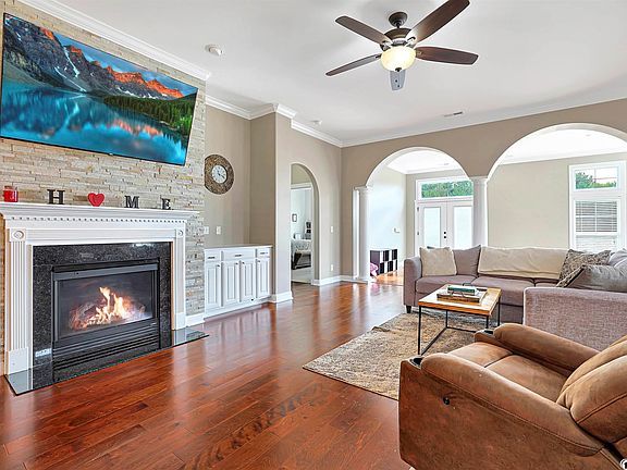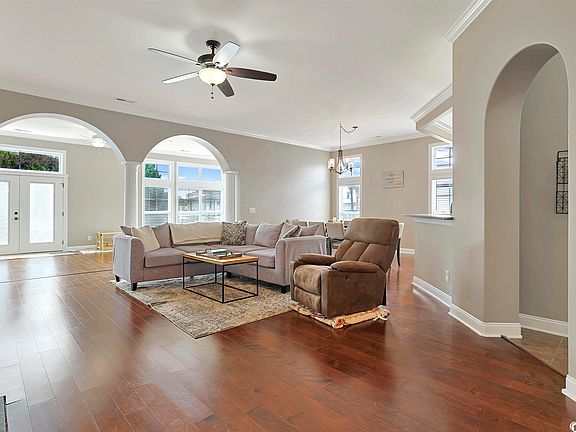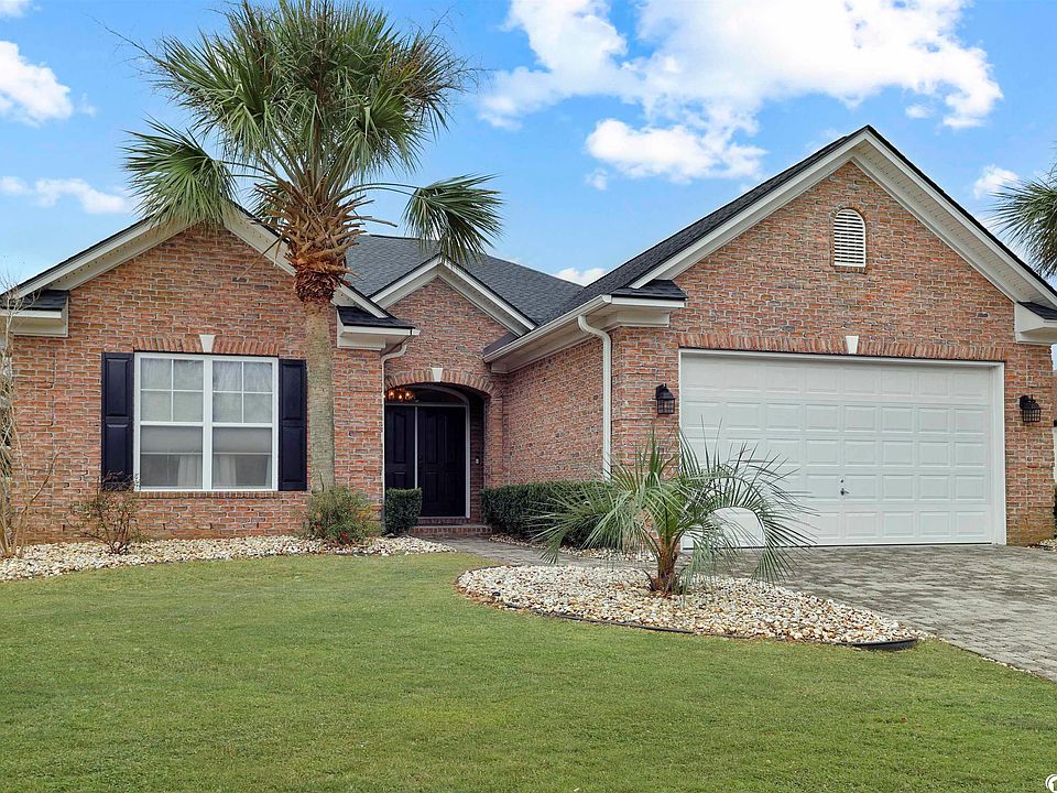 Presenting this distinctive, custom built all brick 3 bedroom 2 bath home situated in the upscale and gated Carolina Waterway Plantation.This enchanting open floor plan home features hardwood, carpet & tile flooring, high smooth flat ceilings with crown moulding, elegant arched entryways, a cozy fireplace, ceiling fans, transom windows, recessed lighting, breakfast bar, granite counter tops, cherry cabinets, stainless steel appliances, smooth flat top range, built-in microwave, French door refrigerator with freezer drawer, and a practical kitchen pantry. The master bedroom suite includes floor to ceiling windows, a single step trey ceiling with fan, private access to the master bath that offers a Jacuzzi brand jetted tub, gentlemen height vanity with dual sinks, glass enclosed step-in shower, large walk-in closet and a water closet. This attractive home also showcases a grand Carolina room with stately columns & French doors that open up to the relaxing back patio. This captivating home is completed with two additional bedrooms, full guest bath, laundry room, and a two car attached garage. Carolina Waterway Plantation has 1st class amenities which include a community center, crystal clear outdoor swimming pool, tennis courts, boat storage and a boat ramp to the Intracoastal Waterway. This home affords you easy access to the beach and golfing along with all of the other activities and happenings in Myrtle Beach along with fun eateries, award winning off-Broadway shows, public fishing piers, and intriguing shopping adventures along the Grand Strand. Conveniently located to your everyday needs, including grocery stores, banks, post offices, medical centers, doctors’ offices, and pharmacies. Check out our state of the art 3-D Virtual Tour.