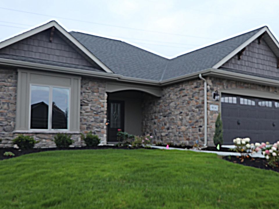 Lancia's Franklin II has 1,478 sq.ft ranch villa is a 3 Bedrooms, 2 Baths, 13 x 9 covered screened back porch and 3-Car Garage. This home comes with a 3-Car Garage. Located in a cul-de-sac. Arched doorway leads to Great Room has ceiling fan, 9' ceiling though out home and Garage. Ceramic backsplash, stainless appliances, smooth top stove, granite Kitchen counters, painted cabinets, soft close drawers, addl gas line standard, island with sink and breakfast bar. Kitchen faces Great Room, covered back porch and Nook. Andersen windows. Separate Laundry Room off Garage. Vinyl plank flooring in Kitchen, Nook, Pantry, Foyer, Baths and Laundry Room. Owners Suite Bedroom has ceiling fan, long 5 x 12 walk-in closet with dual rod & shelf 1-wall unit, separate Bath with dual sink vanity and 5' Shower. Designer white laminate wood shelving in all closets. This is a Smart home with NEW Simplx Smart Home Technology - Control panel, up to 4 door sensors, motion, LED bulbs throughout, USB built-in port chargers in places. Garage is finished with drywall, paint, attic access with pull-down stairs and has one 240-volt outlet pre-wired for an electric vehicle charging. Elevation has stone, wood, stained walnut Garage doors, vinyl shakes and corbels in the community styling. 2-year foundation to roof guarantee and Lancia's in-house Service Dept. (Grading and seeding, irrigation system, lawn and landscaping completed after closing per Lancia's lawn schedule.) ILLUSTRATION SHOWN FROM FOUNDATION STAGE UNTIL SIDING IN ON.