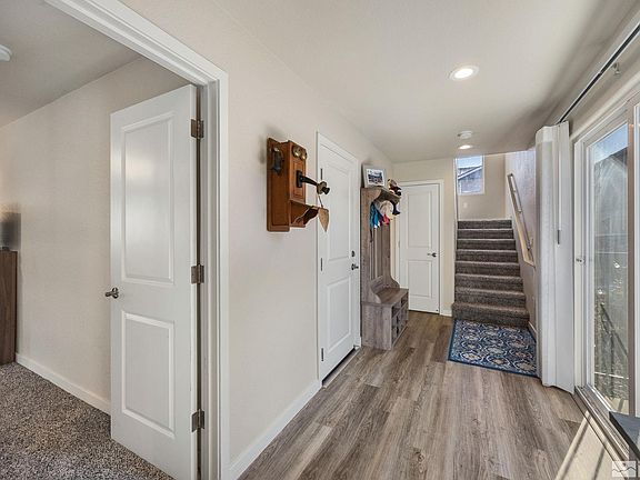 Better than new townhome near the green open area. West facing views. Brand new carpet and custom window coverings. 4 of them are remote control! Large living space, open concept kitchen with large windows and lots of natural light. One bedroom and en-suite bath downstairs with garage. Upstairs is main living room, kitchen, laundry and primary suite with walk in closet and large walk in shower. A must see. Over $11,000 of upgrades in the last few months. A great investment or primary residence!