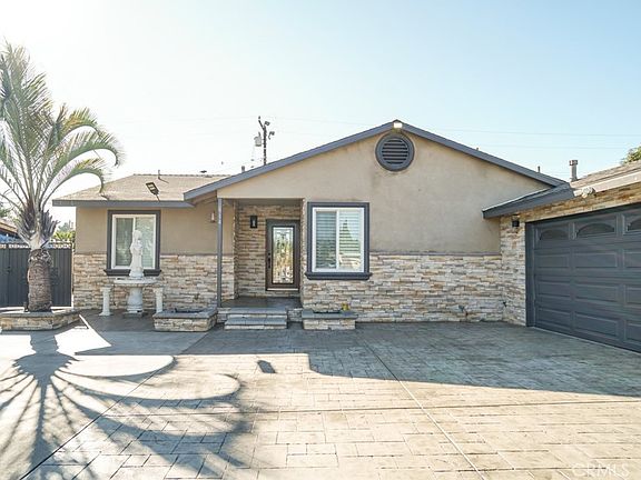 Welcome to this newly remodeled single-level home in a quiet neighborhood, featuring 3 bedrooms and 2 bathrooms across 1,311 square feet. Enjoy fresh paint, crown molding, and new 32"x32" tile flooring throughout. The kitchen is equipped with brand new appliances, including a stove, dishwasher, refrigerator, sinks, and faucets, all complemented by stunning granite countertops. Custom doors throughout enhance the home’s charm. Outside, you'll find stamped concrete in both the front and back yards, along with iron fences with a powder coat finish. There's ample parking, including RV parking, and potential for an ADU (Accessory Dwelling Unit). The home also includes central AC for your comfort.