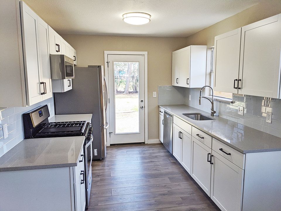 Gorgeous remodel in the heart of Austin. 3 bed, 2 bath with fresh paint throughout, designer light fixtures, no carpet. Beautiful kitchen with pro-type stainless steel appliances, Shaker cabinets, quartz counters and open to living area. The bathrooms are spa like boasting porcelain tile, new vanities with granite and quartz counters, Rainhead showers-take the stress of the day away here! LARGE back yard with full privacy fence surrounding. Put this house on your must see list, it won't last long. Cable ready