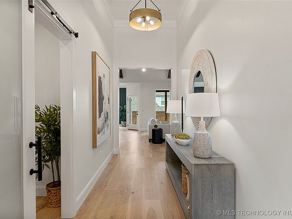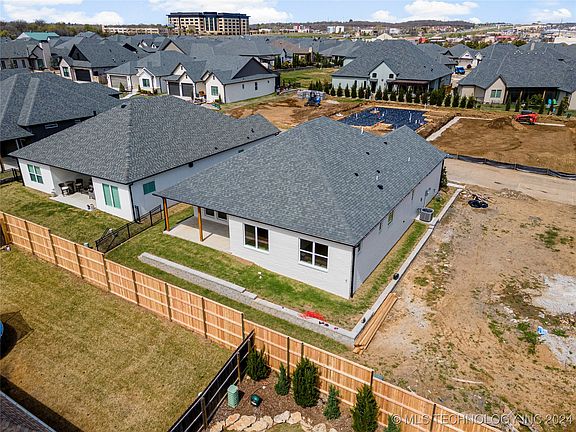 NEW CONSTRUCTION in the easy living neighborhood of Hyde Park at Tulsa Hills. The home features 3 bedrooms, 2.5 bathrooms with a high-end kitchen open to the living room, stone fireplace, built in cabinets and shelves, walk-in pantry, office, and a spacious front porch. Situated in a vibrant 55+ community. Homeowners gain access to a lavish clubhouse offering pool, indoor/outdoor pickleball, library, tennis, putting green, gym, and more. All single-story homes include yard maintenance, providing ease, while proximity to various amenities, medical facilities, and exceptional restaurants adds to the appeal of this exclusive living experience.