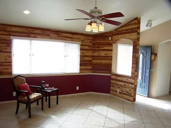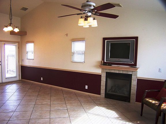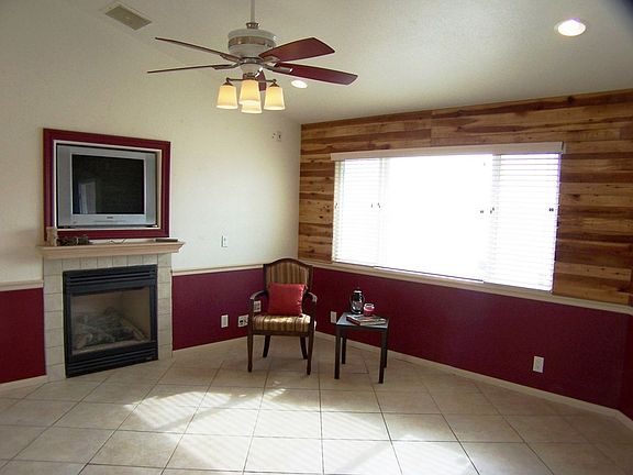SEEKING AN INDOOR AND OUTDOOR LIFESTYLE? 3-brm built in 2006! Great layout throughout! 14" ceramic tile in Living, dining, kitchen, hallway, and bathrooms. Recessed TV wall insert fits Sony TV with built-in speaker hookups, and gas fireplace graces the living room. Kitchen offers Corian counters, a bay window, complete matching appliances, and built-in shelves for art work. Two sets of French doors, one from master bedroom and the other from the dining area, leads out to a covered patio with spa, two ceiling fans, and deck speakers. Surround sound system feeds built-in master bedroom/bath speakers!! Backyard landscaping complete with extended stamped concrete patio, fire pit, private sitting area, and a winsome rock waterfall! Also, a separated area in back with large wooden shed, a metal shed, and side access. Seller is offering a $1100-bedroom carpet allowance from Windows, Walls & Floors. Home inspection is complete for buyer review! ABSOLUTELY CHARMING & INVITING!!