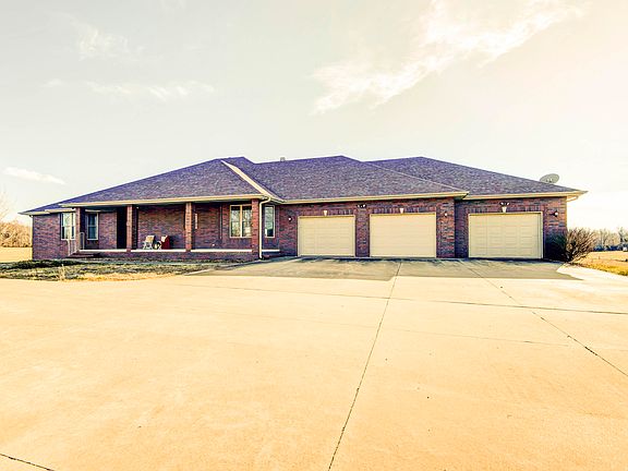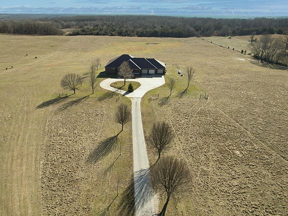 Pride in ownership shines with meticulous attention to detail & quality of workmanship in this all brick walkout basement home on 5 acres - more land available. Boundless opportunities offer creative solutions for today's housing needs: multigenerational, work office, home school etc. Let the warmth of this property welcome you with soaring ceilings, hardwood floors & natural light. Your great room is the heart of the home with ducted wood burning stove & open concept plan pouring into the kitchen with bar, island, granite, huge pantry, gas range & abundant prep space. Your master retreat offers crown molding, an ensuite with soaking tub, walk-in shower, dual vanity & huge walk-in closet. The main floor has 2 additional bedrooms, full bathroom, laundry with half bath & sunroom with stunning views, own heat/air & wet bar. The versatile basement has a mini kitchen, large bedroom, full bath & bonus room perfect for a theatre, craft space, home school etc. You'll love the MASSIVE storage area with shelving & storm shelter including new concrete. Plus you have 2, count 'em TWO attached shops! A main floor garage shop has 220, pulley system, gas line, electric car charging outlet, hot & cold water, 20+ outlets & fishing pole holder. Downstairs you'll love the John Deere shop accessed through a hidden bedroom closet. NEW within the last few years: 3 year old roof with 50 year shingles, pressure tank, water heater, water softener & dishwasher. Other benefits include: dual zone HVAC, underground electric, mudroom, walk-in closets in all bedrooms, sump pump, patio wired for hot tub & sauna. Bring your lemonade & rocking chairs to enjoy expansive front & back covered porches overlooking your land perfect for livestock, ATVs & a buffer from your neighbors with open pasture, pond & fencing. Enjoy a country setting just minutes to Hwy 44, restaurants, shops & hospitals. There's no better backdrop for the memories you'll make in the next chapter of your life here at home.