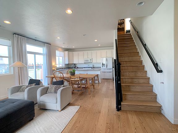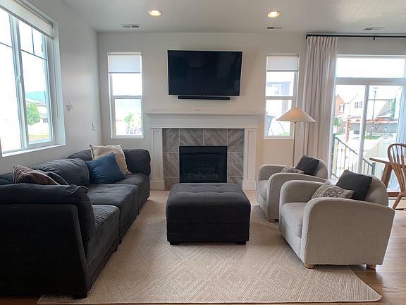 Discover this spacious 2,100 sq ft home, ideally situated just minutes from I-15, I-215, I-80, and Legacy Parkway, offering a quick 15-minute drive to downtown Salt Lake City. Enjoy the convenience of walking to grocery stores, schools, and parks, including the beautiful Foxboro North Regional Park with its splash pad. This home boasts breathtaking mountain views and picturesque sunset skies over the Great Salt Lake. Inside, you'll find elegant hardwood floors, a cozy fireplace, an expansive primary suite, upgraded appliances, two car garage, and 9' ceilings that flood the space with natural light. The backyard has turf with a concrete patio for your enjoyment without maintenance. Don't miss out on this perfect blend of comfort and location!