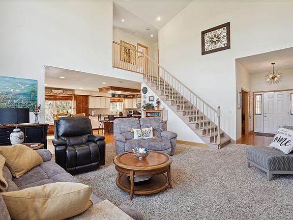 Nestled just outside the city limits in Northeast Cedar Rapids, this stunning home sits on over an acre in a peaceful cul-de-sac surrounded by lush gardens, mature trees, and even a charming waterfall. The open floor plan with vaulted ceilings creates a spacious, airy atmosphere, perfect for both everyday living and entertaining. This five-bedroom home offers ample storage and surprises like a secret room.