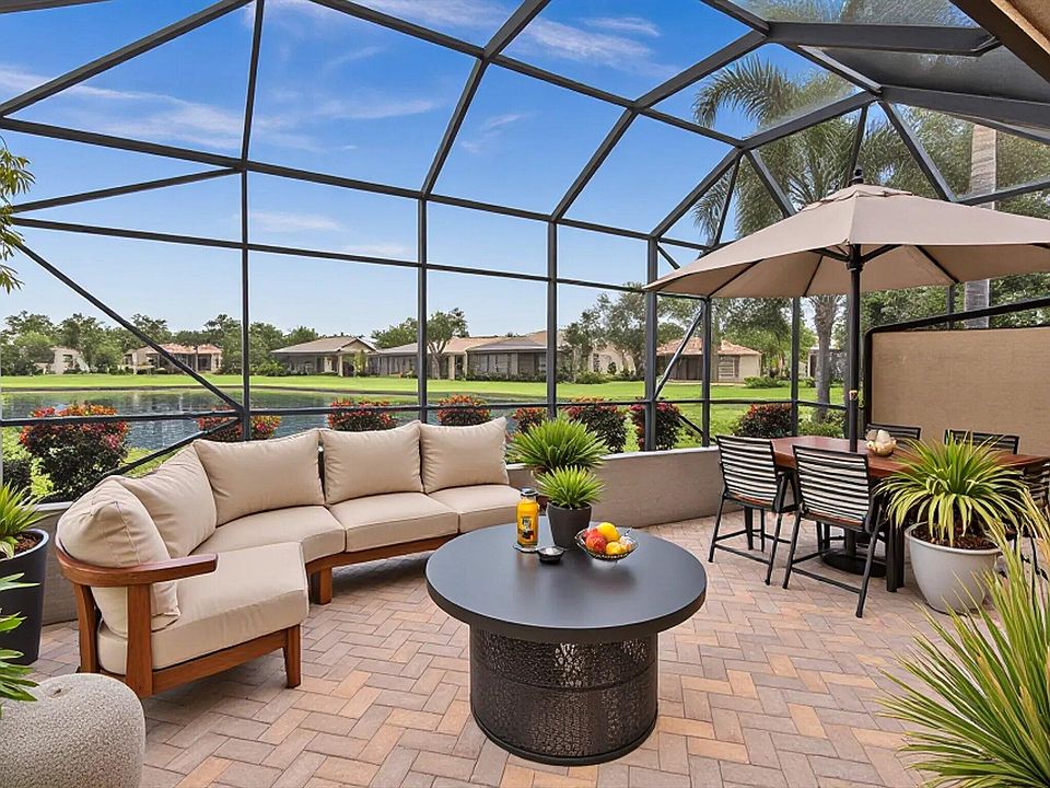 Situated on a premium oversized lakefront lot, this desirable Gibraltar model boasts an expansive open triple split floor plan with 3 bedrooms, 2.5 baths, a den/ home office, family room, living room, dining room and 2 car garage. Enjoy outdoor living with an extended screened lanai overlooking the water. The gourmet kitchen is a chef's paradise featuring endless granite counter tops, cabinets, modern task lighting, pantry storage and a bright breakfast area. Valencia Reserve is a beautiful resort style active adult community. Amenities include a 24-hour manned main gate, a luxurious soon to open completely remodeled 41,000 square foot Clubhouse with card rooms, exercise studios and fitness center. The resort style pool, lap pool, resistance pool and a hot tub are overlooking a... pristine lake. There are also nine tennis courts, four pickleball courts, bocce and shuffleboard courts. The Cafe offers breakfast, lunch and a take home dinner menu. There is a plethora of clubs, classes and games for all! The community's location offers proximity to shopping, dining, cultural events and the beach. The turnpike and I-95 are also easily accessible. Please refer to the document tab to see the renderings of the soon to be completed clubhouse renovation