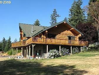 What a home and shop!! Custom built log home with wrap around porch and balcony. Vaulted ceiling with views of fern ridge. Private master suite. The floor plan has many options with 4-6 bedrooms and possibility for separate living quarters. New carpet, new heat pump, all appliances stay including W/D. New 4000 sq/ft shop with concrete floor and built with permits!! 4 large roll up door and 2 man doors. This won't last!