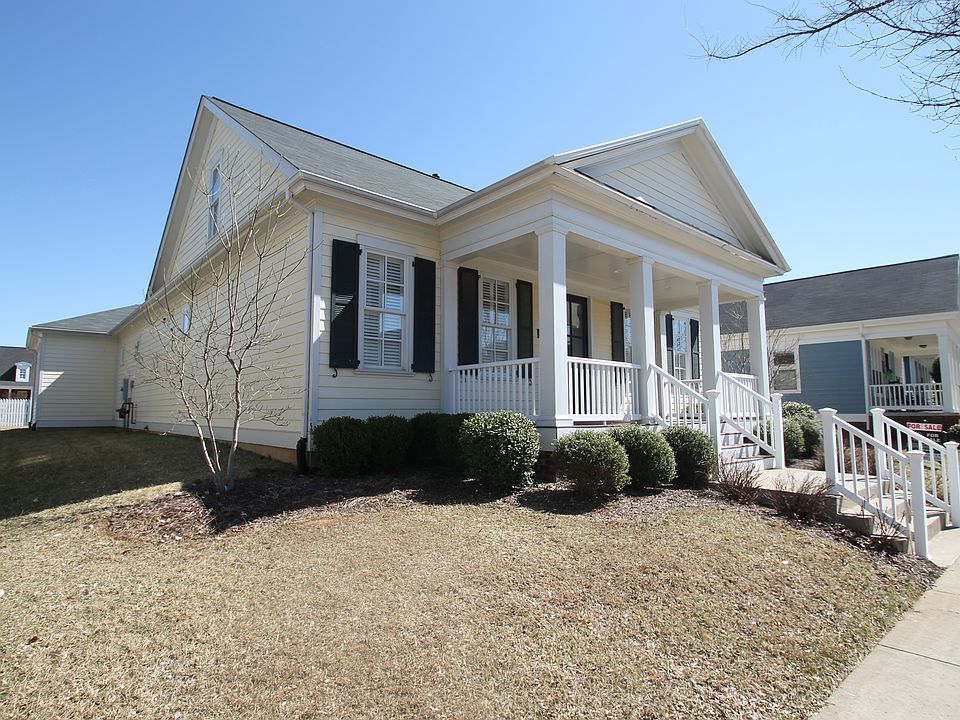 Welcome to the Norton Commons living experience with a rare single family 3BR/3BA home with charming front porch, a fully fenced private backyard with covered porch and attached two car garage. Enter through foyer with private study/office and into large great room with open floor plan, hardwood flooring, fireplace and custom built in bookcases. Great room opens into kitchen with granite counter tops and all stainless appliances. Dining room walks out to private patio and backyard. Master bedroom is oversized with a jacuzzi tub and large bathroom suite. First floor has laundry room and second bedroom as well. Upstairs has a large open nook/playroom and third bedroom. Basement is partially finished with entire basement framed and plumbed to add another 1500 sq ft of additional space