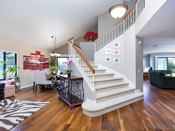 RARE OPPORTUNITY to own a Gorgeous Home with Ocean Views & Amazing Sunsets! Offered at $900,000 to $925,000. Numerous upgrades including kitchen w/custom cabinets, stainless steel appliances, granite countertops & recessed lighting. Vaulted ceilings, cozy fireplace, dual pane windows, alarm system, wood floors & more. Robust SOLAR system from Baker Electric (Owned). Large deck off Master BR to enjoy sunsets, ocean views, hot air balloons & fireworks! Huge yard w/sparkling pool & spa. NO HOA or MELLO ROOS! Amazing home located in the acclaimed Poway School District. Features bedroom and full bath on first floor. Pool updates in 2019 include NEW plaster, lights and drains. Pool pump is about 5 yrs old. Pool security gates included. Previous owner paid $40k for solar system by Baker Electric with new roof underneath around 2015. Re-piped with copper $10k. Water heater about 5 yrs old. New fencing on right side, newer dishwasher and clothes washer. Close to shops, restaurants, grocery stores, parks, bike trails and more. Easy access to HWY 56 & 15. Less than 10 minutes to the beach and 25 minutes to downtown. Hurry...This property will go fast!!! Seller will Entertain Offers between $900000 - $925000