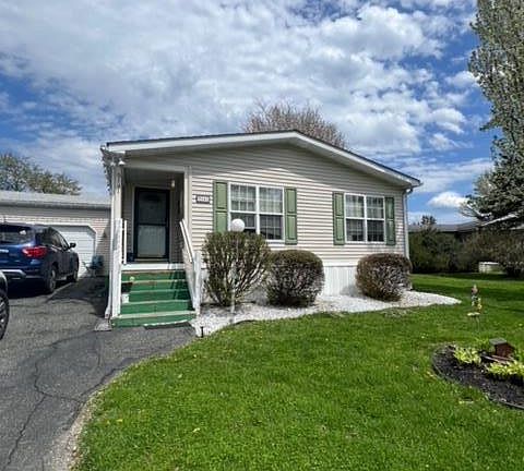 Welcome to Green Acres Living! This well maintained mobile home offers over 1900 sq ft of luxurious living space, meticulously designed to cater to your every need. Boasting 3 bedrooms and 2 full baths, along with a versatile den/study/office that can easily double as an additional bedroom, this home provides the flexibility and functionality desired by modern families. The spacious kitchen is a culinary haven, featuring newer appliances, a convenient center island, and ample counter space, perfect for preparing delicious meals and entertaining guests. Storage is never an issue with the attached 2-car garage and full walk-up attic space, providing plenty of room for all your belongings. The large living room and dining area offer inviting spaces to relax and unwind, while two outdoor patio areas beckon for al fresco dining or quiet moments of reflection. Additional storage needs are met with the included utility shed. Plus, with lot rent covering water, sewer, trash/recycling, and snow removal of main roads, you can enjoy carefree living at its finest. Green Acres also offers a wealth of amenities, including a clubhouse, pool, volleyball, basketball, and tennis courts, ensuring endless opportunities for recreation and community engagement. Don't miss out on the chance to experience the ultimate blend of comfort, convenience, and community in Green Acres—schedule your showing today and make this stunning property your new home!