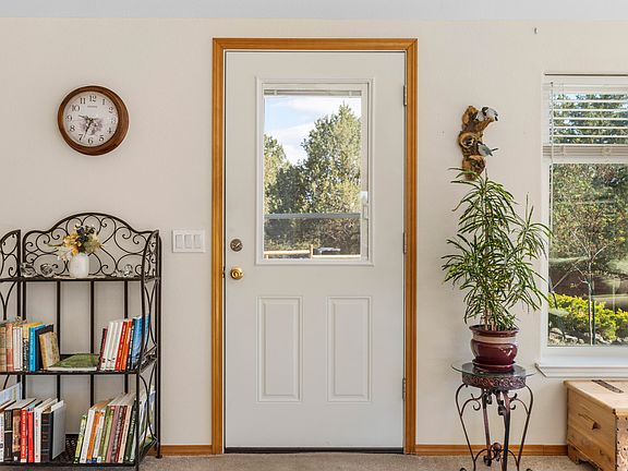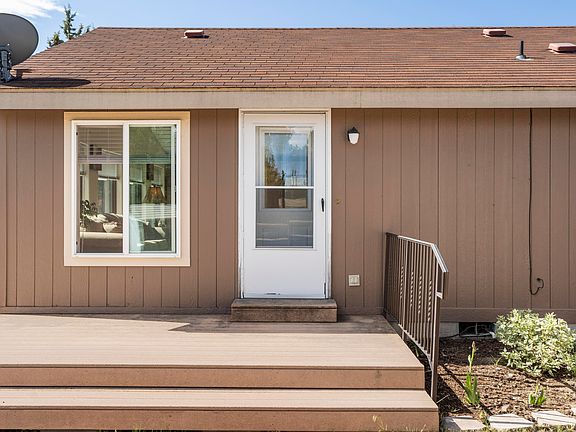 Check out this value!! This meticulously maintained 2 bedroom, 2 bathroom home is everything you could have hoped for. Cozy, yet spacious at 1,144sqft, it is light and bright with huge windows throughout, vaulted ceilings, and slider in the primary and kitchen. Kitchen has tons of storage, island with breakfast bar, and is open to the living space. Primary suite is a generous size with a walk-in closet, step-in shower, and private entrance onto the composite deck which wraps around the home. Outside you'll find a lovely back yard with manageable landscaping which includes mature trees, young fruit trees, greenery, and a lawn - all easily maintained with sprinklers in front and rear! Property is fenced, with interior deer-proof fencing around the house. Less than one year old, oversized single-car metal garage sits on a concrete pad and has power. Property also features heat pump, 30amp RV hook-up, paver patio in the rear, several water hydrants, and serenity!