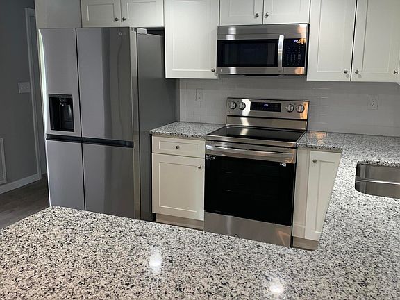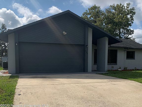 A beautifully updated 2 bedroom, 2 bath, 2 car, pool home, in a well sought after neighborhood in Spring Hill is move-in ready. Freshly painted inside and out in warm gray tones. This home boasts with all new LG appliances (flat top stove, over the stove microwave with hood fan, dishwasher and handleless fridge. Solid wood cabinets with soft close in the kitchen as well as both bathrooms. All countertops are granite. All floors have luxury vinyl plank flooring and both baths have ceramic tile. All new light fixtures, plugs, switches and covers, and plumbing fixtures throughout. The bedrooms have ceiling fans with lights as do the dining room and living room areas. The sparkling outdoor pool has been resurfaced and has new cool-decking around. A fenced yard and rebuilt shed will house your lawn equipment and keep the fur babies at home. Roof is 2011 and septic was recently inspected and cleaned . --