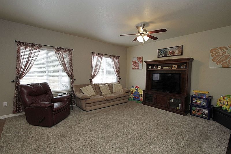 Spacious Two Story with 4 bedrooms plus main floor study. Open floor plan with bright kitchen featuring slab granite, SS appliances and eating bar, opens to sunny dining area and family room. Hardwood floors on main in kitchen and main floor study. Master with private bath w/ granite, plus three more roomy bedrooms upstairs with a shared full bath w/ granite. Room to grow in full unfinished basement. Attached 4 car, patio, fence, sprinklers. Great neighborhood with no HOA dues.