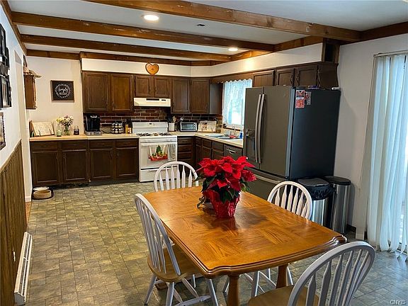 Well maintained spacious 3 bedroom, 2 bath ranch on large lot. The eat in kitchen has a large dining space and a wood burning fireplace. The master has it's own private bath, while the main bath has been recently updated. This home is close to Oneida lake with marinas nearby for those that enjoy water sports. Basement is open and dry with potential.