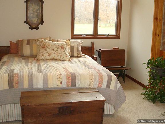This charming home offers something for everyone; country quiet and city convenience. A contemporary 1 1/2 story home has three levels of living space on 5 + acres of beautifully manicured land. The home's lower level boasts 2 bedrooms, an office, full bath/laundry room, and a convenient walk-out family room. Family and friends will enjoy the warm, airy feeling of a beautiful vaulted tongue-in-groove pine ceiling, and expanse of windows & doors, and the stunning 2 story fireplace of the Great Room on the main level. Two atrium doors lead out to the large wrap around deck. Bedroom and full bath are very comfortable for family and/or guests. The vaulted ceilings continue up to the unique loft-style Master suite, including full bath and large walk-in closet. Extra floored storage area, a real bonus. The acreage consists of many flower gardens, fruit and mature trees, 2 garden or equipment sheds, walking/4-wheeler trails and more!