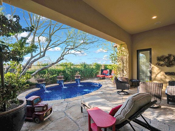 Rare opportunity to own an absolutely incredible DC Ranch home with 3 BR / 3BA in main house PLUS 1 BR / 1 BA attached guest casita! Perfectly located in the gated enclave of Desert Camp Villas, this elegantly appointed property offers exceptional high end finishes, natural light, and thoughtfully planned desert color palette. From its charming private courtyard entry, the custom iron & glass front door leads to an open great room floor plan with abundant natural light, generous gathering spaces and elegant gourmet kitchen with high contrast cabinetry & luxurious slab counters. The owners' suite is a truly a retreat with a spa bath & dual closets. Two additional guest rooms & baths & laundry center round out the main house. Through entry courtyard is the private guest casita with spacious bedroom, full bath and closet - perfect for your guests. Enjoy the privacy of the villa's intimate back yard setting featuring mosaic tiled heated pool with spa jets and water features, outdoor grilling area and mature landscaping. Relax here with morning coffee or an evening entertaining friends. Residents can enjoy the world class amenities across the street at Desert Camp, and walk to Market Street for shopping, dining & meeting neighbors. Welcome Home!