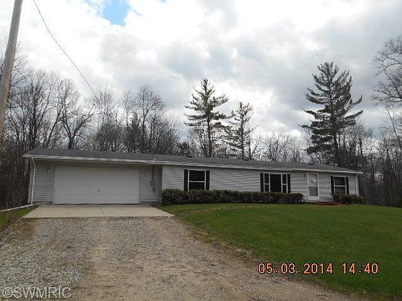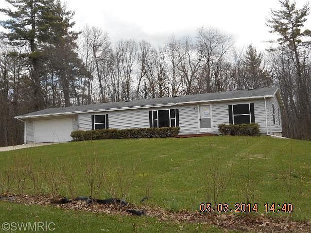 This Ranch style manufactured home is situated on just over an acre and and borders the Flat River State Game area. Features an open floor plan with cathedral ceiling, huge living room, dining area with slider to deck, three bedrooms, two full baths, and an attached two stall garage. Buyer to verify all information. Square footage and lot dimensions are approximate. Home Needs a water heater. Sold as is. THIS PROPERTY IS ELIGIBLE UNDER THE FREDDIE MAC FIRST LOOK INITIATIVE THROUGH 5/28/2014.