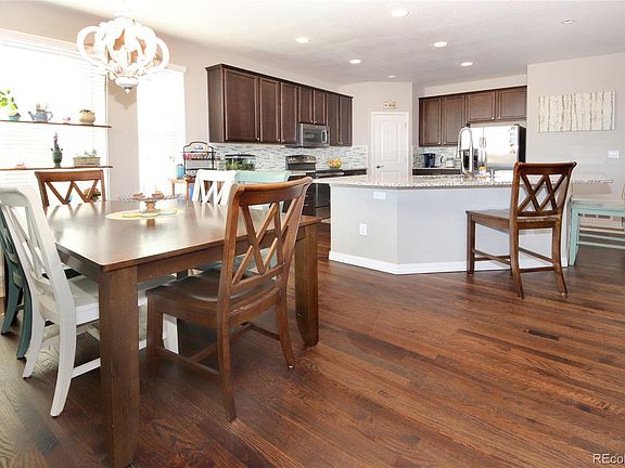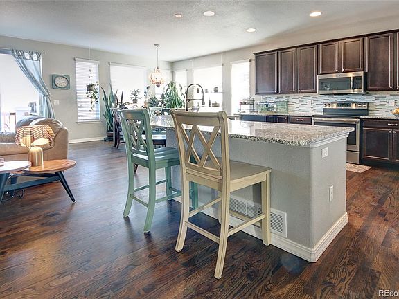 Here is your chance to own an immaculate home in beautiful Wolf Ranch. This bright open-concept main level floor plan offers beautiful, REAL hardwood floors, main level living includes master, laundry, office or additional bedroom, and a gorgeous kitchen open to the great room and dining area. 2016 stainless steel appliances, granite countertops, and a HUGE island are all included. The basement is fully finished and offers 3 additional bedrooms (one with its own private bath).Also included is a large Recreation/living room equipped with a large wet bar and built in shelves. Granite countertops are present in every bathroom and at the wet bar. Trex deck off of the living room and dining room. All windows have custom fit blinds that stay with the home. Large closets throughout the home offer plenty of storage. Upper living room includes a gas fireplace. High ceilings throughout the home. Garage has 4ft extra in length. Located in desirable D 20 on a quiet cul-de-sac. Access to miles of walking paths, community parks, and charming Wolf Lake right up the road. Close access to plenty of amenities and a community pool (membership is an extra fee).