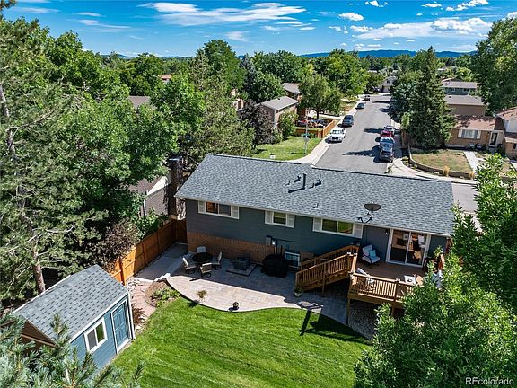 This charming home exudes a true sense of homeowner pride, showcasing an updated banister and stylish new vinyl flooring throughout. The main living area is bathed in natural light, thanks to a south-facing front window, creating a warm & inviting ambiance. The spacious dining room is perfect for hosting gatherings, easily accommodating for all your family/friends. The sliding glass door offers seamless access to a stunning deck, overlooking a beautifully landscaped, park-like backyard. The expansive patio provides a private, shaded retreat to relish the beauty of the Colorado outdoors. The kitchen is inviting with plenty of space to move, space for breakfast table, large window that frames the serene view of the lush, mature landscaping. Enjoy the privacy provided by the trees over the walking trail, which conveniently leads you straight to Lilley Gulch Rec or eastward to Clement Park. The primary bedroom is a tranquil haven, featuring a 3/4 bath for convenience. The two bedrooms share access to the main bath, complete w/double sinks & extended tub/shower. The lower level is a cool, comfortable space perfect for a family rm, office, or play area, and includes a half-bath, laundry area and direct access to the garage w/newer doors, pegboard, workbench, and cabinets, is a handyman's dream, the driveway offers add'l parking. For extra storage or creative space, the backyard boasts 2 sheds. One for functional storage, while the other, offers the potential to be transformed into a delightful play area or versatile workspace. The home is topped off with an impact-resistant roof and recently replaced gutters, ensuring peace of mind for years to come. Fresh interior paint, updated baseboards lend the home a modern, updated feel. Ideally located on the southwest side of Littleton, this home offers easy access to a wealth of amenities, including shopping, restaurants. It's move-in ready and eagerly awaiting its new owner to step in and start enjoying all it has to offer.