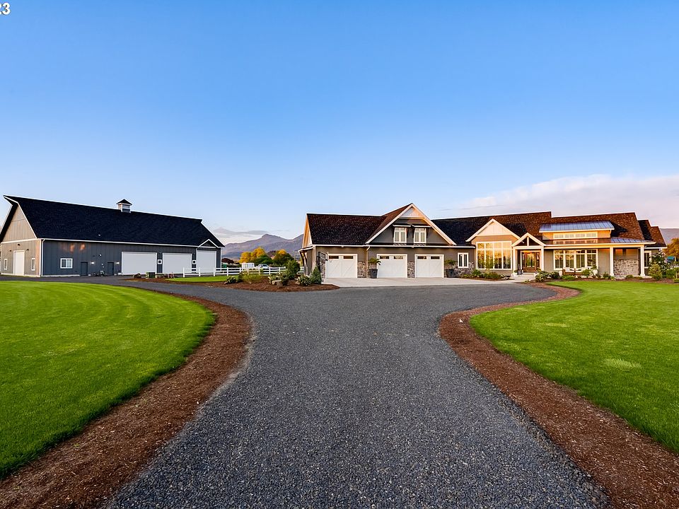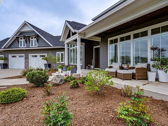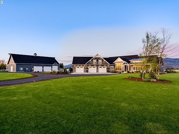 Spectacular builders own home! Located on a charming country lane near the highly sought after downtown area of Coburg. Incredible attention to detail throughout this custom home. The entryway and living room has reclaimed old milled beams on the ceiling. The floor to ceiling stone fireplace is surrounded by built in bookshelves. Enjoy the view and outdoor living space from the NanaWall folding doors from the living room. Prepare to fall in love with the gourmet kitchen including, a 60 inch gas Wolf range, built in Subzero refrigerator and freezer, 14 foot island with gorgeous Quartzite countertops and 2 dishwashers. Huge pantry with another Subzero refrigerator, cabinetry and a sink. Game room/family room is a perfect entertaining space with a wet bar and ample room to have a pool table. The bar has a walnut live edge bar top, walnut cabinetry and tile. The main level primary bedroom suite is privately located and stunningly beautiful. The suite features 2 huge walk in closets with built-in dressers. The freestanding soaking tub is beautiful and perfectly situated to enjoy the country views. On the primary bedroom side of the house is a workout room that could also be used as a main level office, nursery or another bedroom. The main level has 2 additional bedrooms with a Jack/Jill bathroom upstairs there are 3 additional bedrooms all with walk in closets and a large bonus room. Throughout this incredible home there are 8ft solid white oak doors. Outside there is a 60 x 96 shop has 7 bay doors and it perfect for RV, Boats, tractors and a large workshop area. There is also a studio apartment that is fully finished in the shop with a separate entrance that is perfect for added living space for a family member or a nanny.