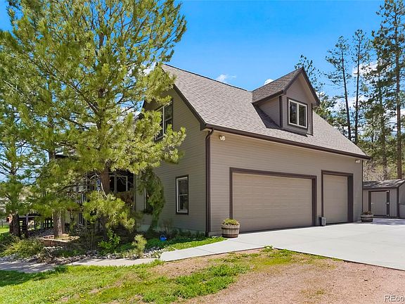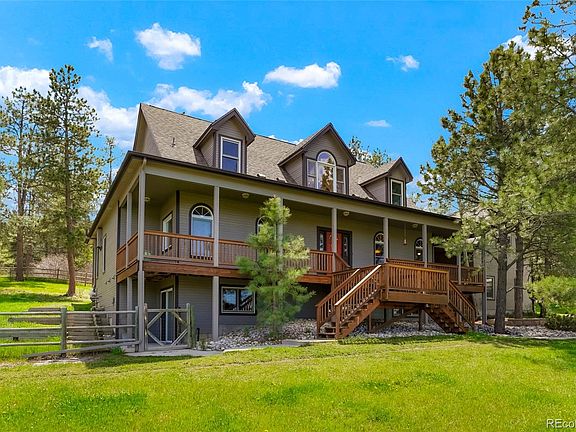 Veranda style front porch with entry to a large great room with gas fireplace that opens to a country kitchen, dining room and master bedroom suite. All rooms have abundant natural sunlight, and the main level opens to a spacious back deck with woodland views providing privacy and the enjoyment of nature for all the colorful Colorado seasons. Additional 2 bedrooms and full bath upstairs and a finished basement with 2 bedrooms, full bath, flex space, and large storage room. Oversize 3 car garage connected to house and studio apartment by covered breezeway. Studio apartment with private entry has private bath, gas heater stove, and full kitchen.