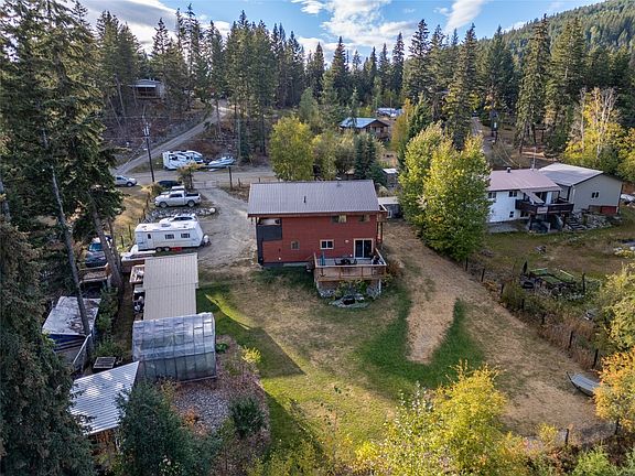 Inside, a charming spiral staircase leads to a bright family room, two bedrooms, and a full bath, along with a covered 17x8 deck offering mountain views and glimpses of the lake. The nearly half-acre fenced lot features abundant parking, a 12x14 shed, and a greenhouse with easy access from Todd Mountain Road.