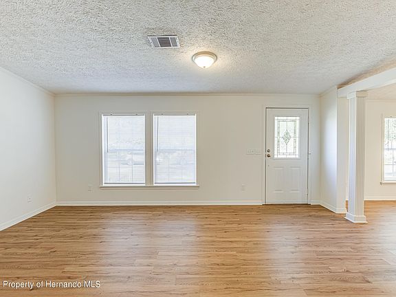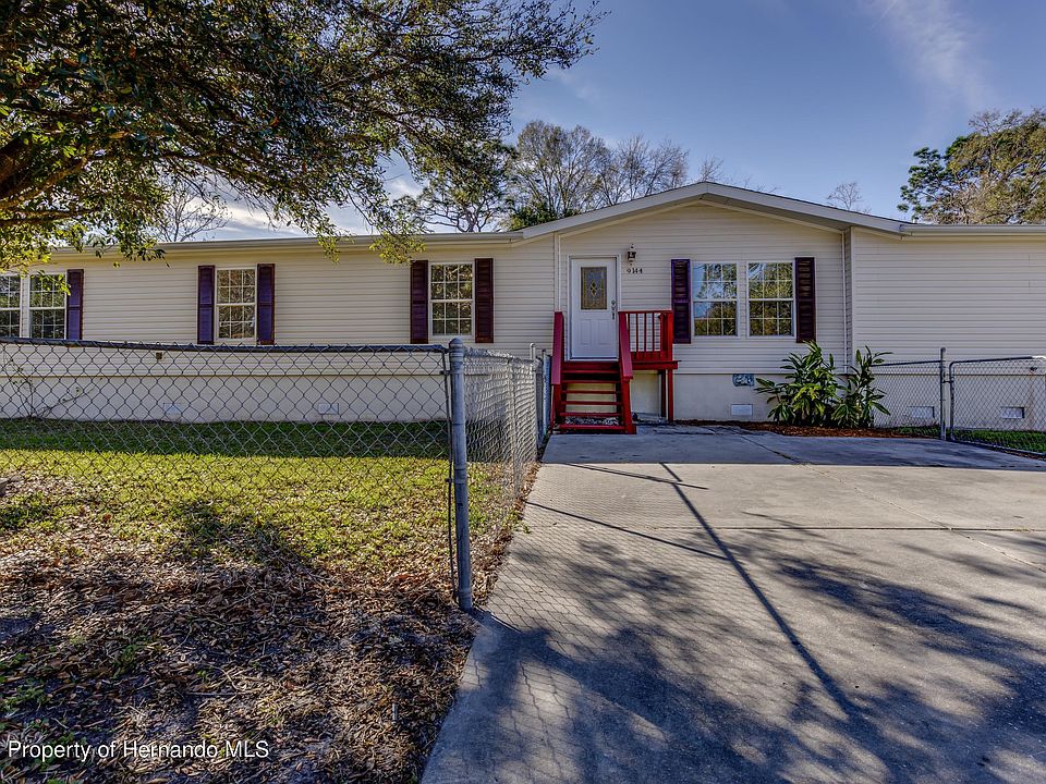 Active Under Contract. WELCOME HOME to this UPDATED AND MOVE-IN READY 4 bedroom/ 2 bath property, with almost 1/4 acre that is fully fenced from the front to the back yard. On the inside you will love the brand new water-proof luxury vinyl plank flooring throughout, vaulted ceilings with crown moulding, new cordless blinds and fresh paint. The beautifully updated kitchen boasts a butcher block island, stainless steel appliances, walk in pantry and room for you and whoever wants to help cook those great meals. The living room. dining room and family room adds so much entertaining space. The master bedroom features 2 walk-in closets and a private bath. The master bath has dual sinks, vanity area, garden tub and a separate shower. The other 3 bedrooms boast walk in closets. Inside laundry room with wood cabinets. On the outside you can enjoy sitting on your front or back porch, an 8 x 12 shed for you to create your own man cave/she shed and there is plenty of room to add a pool, garden or play area . Brand new HVAC, septic system, well pump, water softener, water-proof flooring, countertops, range, blinds, toilets and more. So much to enjoy about this home plus it's about 8 miles to the Suncoast Parkway for easy access to Tampa!