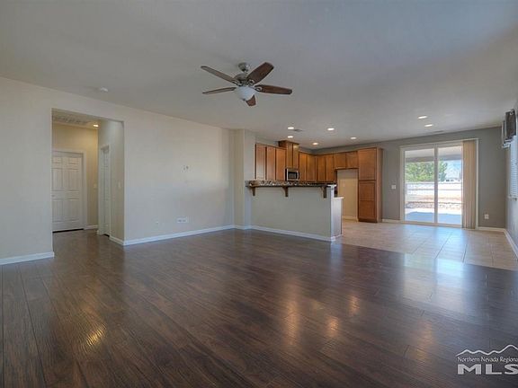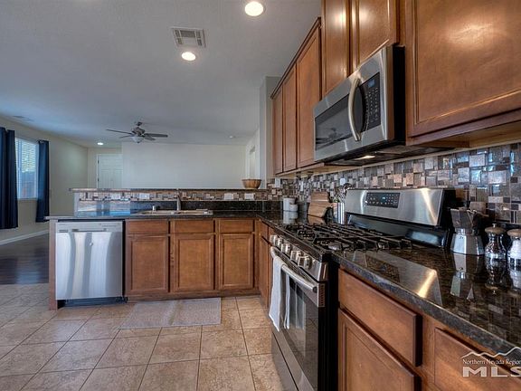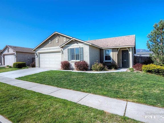 Beautiful home located in an optimal location on a quiet dual cul-de-sac. Located 15 minutes from downtown Reno, this home is in an optimal location for a renter based anywhere in the Reno area. The Livingroom is a large open space with surround sound hookups to create an excellent TV viewing experience. The kitchen features a gas range with beautiful accent tile behind the counters. All bedrooms are spacious and clean with full size closets. Master bathroom features a large walk-in closet, his and hers sinks, and a large walk in shower. A 3-car garage provides ample storage/ parking and comes with an additional fridge. Washer/ Dryer included with rental. The backyard features a large paver patio which is excellent for entertaining. A large garden and horseshoe pit are also on site in the back yard. Solar panels are installed to significantly lower the renter's NV Energy bill monthly. A/C and Furnace are serviced annually. Owner pays trash/ sewer monthly Renter responsible for paying TMWA, NV Energy, Internet. Renter is responsible for providing a refundable $250 deposits per pet. Renter must provide proof of vaccinations for all pets included in rental. No smoking on property. Owner responsible for maintenance of the external facade of the house (chipped paint, windows, roof repairs) Tenant responsible for remaining in HOA compliance (Mowing grass, pulling weeds, taking in trash bins after pickup).